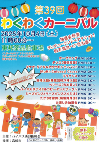 今年も「第39回 わくわくカーニバル」が開催されます♪