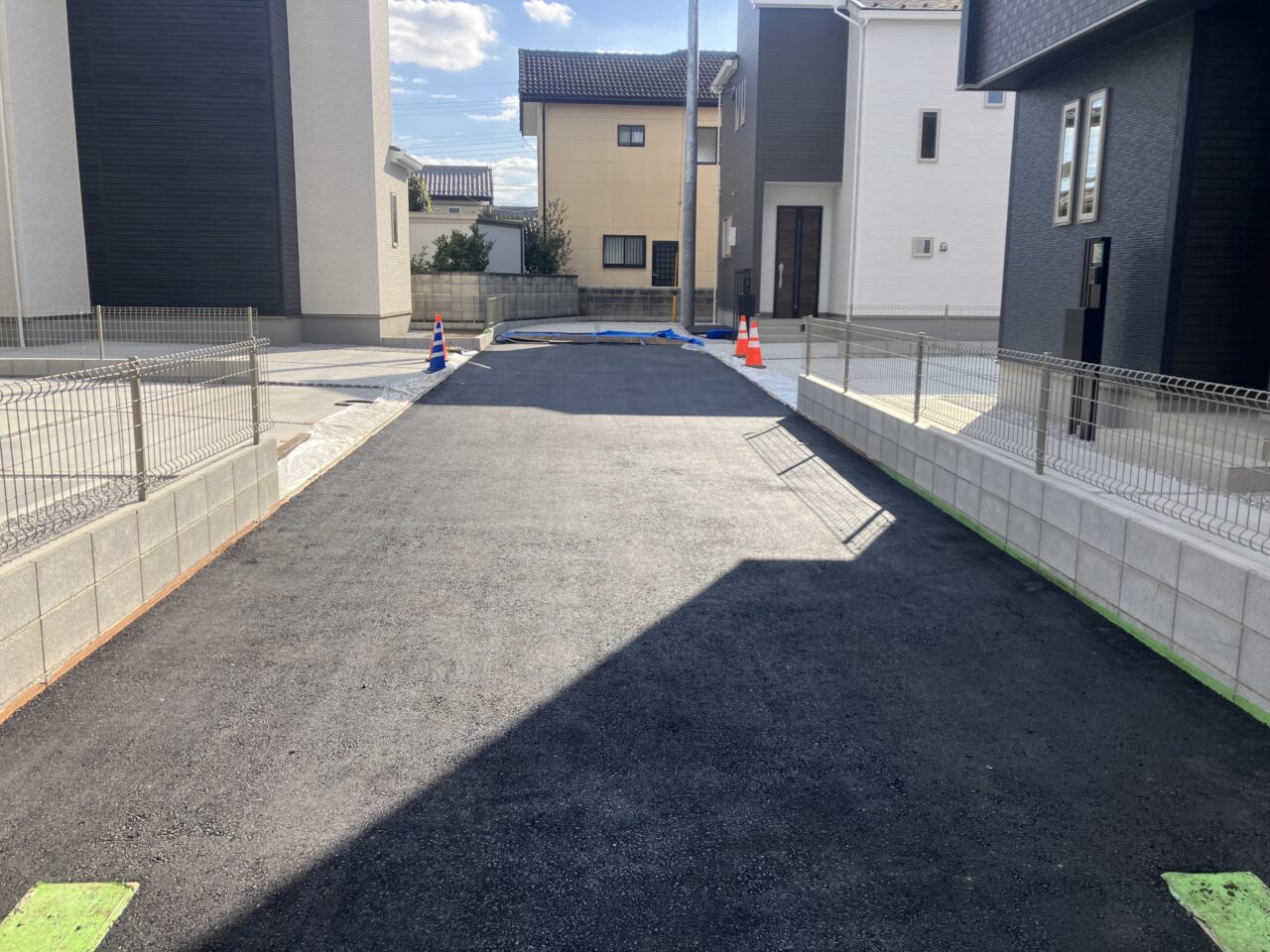 完成後は、黒く締まった舗装が景観を引き締め、分譲地全体の印象