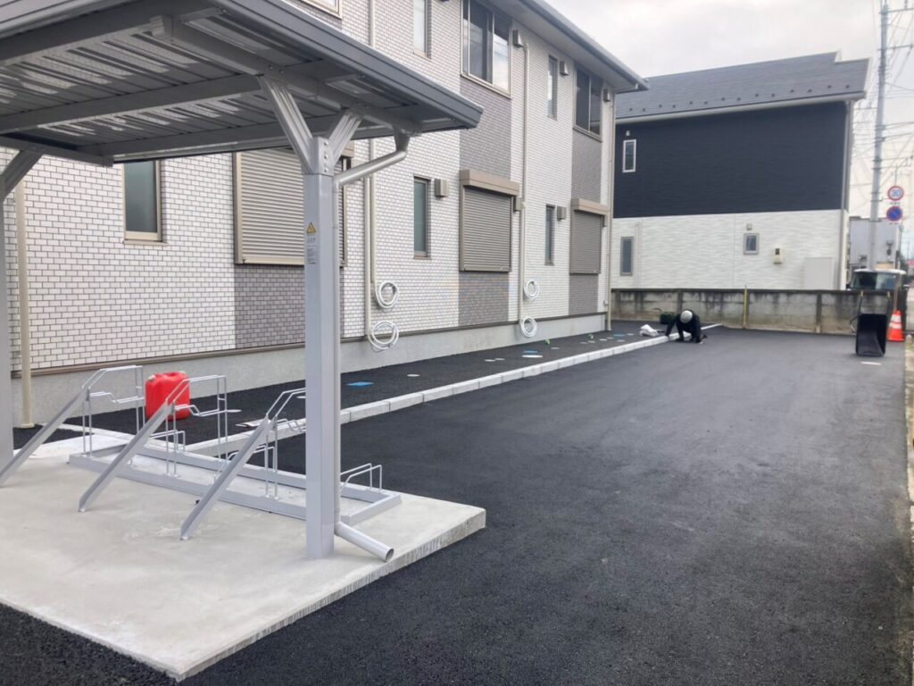 高崎市 新町・上並榎町にて、新築アパート駐車場の舗装工事を施工しました!