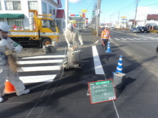 道路を安全に交通出来るのは区画ラインや標識ラインのおかげでもあります。ラインの復旧作業です。
