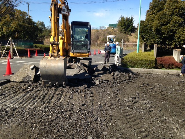 架空電線・一般車両の接触を考慮し、重機バックホーでの路面掘削の作業は不適切と考え、道路をゆっくり進みながら路面掘削が可能な切削機を導入しました。